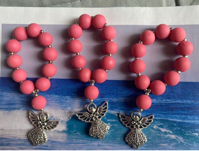 Mini terços dezena com bolinhas emborrachadas na cor Rosa.