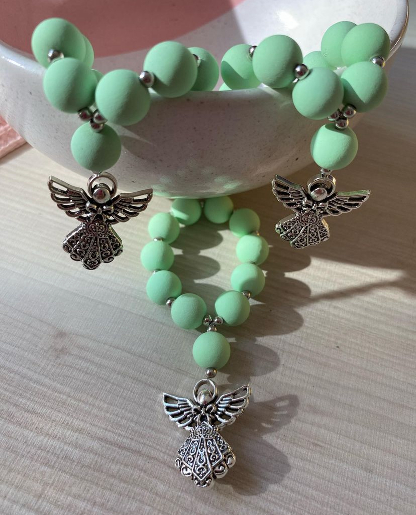 Mini terço dezena com bolinhas emborrachadas disponivel na cor verde bebê.